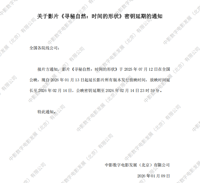 关于影片《寻秘自然:时间的形状》密钥延期的通知