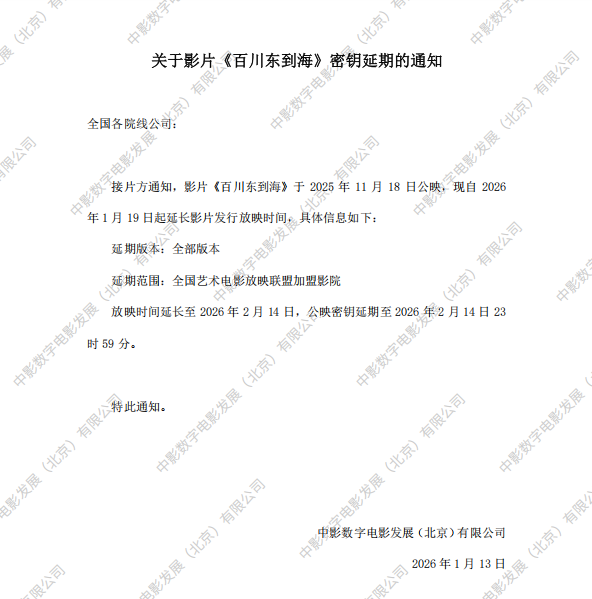 《百川东到海》密钥延期的通知