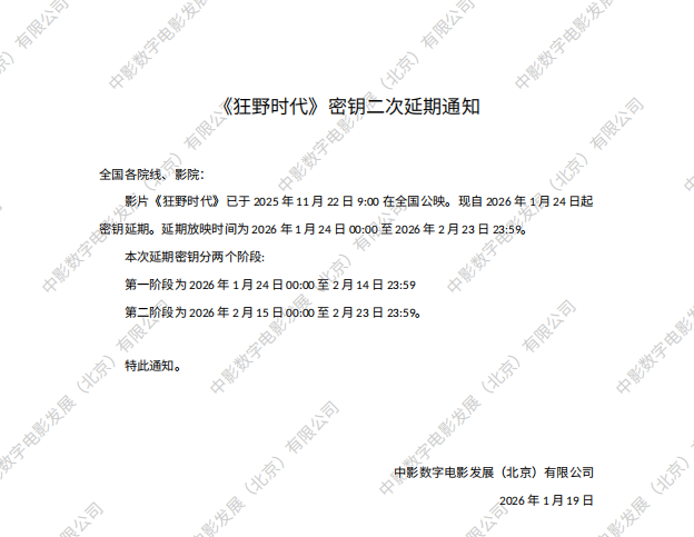 发行通知 » 《狂野时代》第二次密钥延期的通知