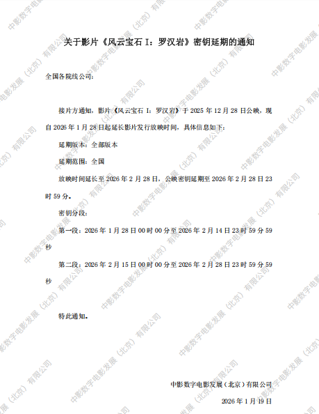 《吉庆街火》第十二次密钥延期的通知