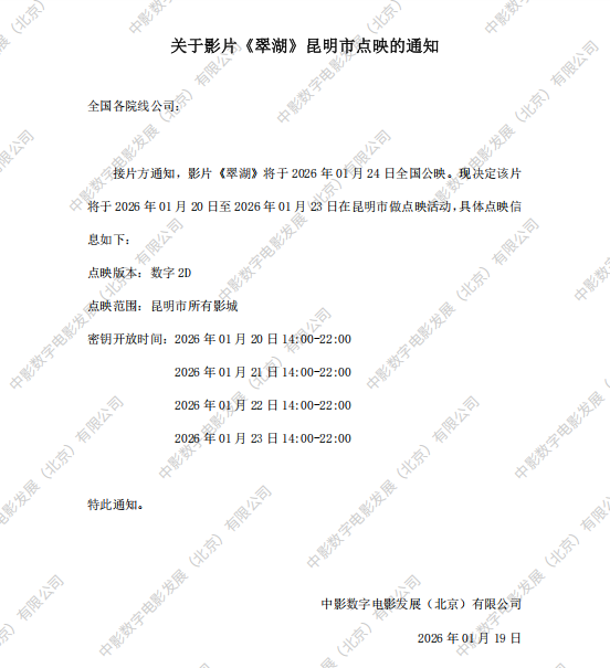 《翠湖》点映的通知