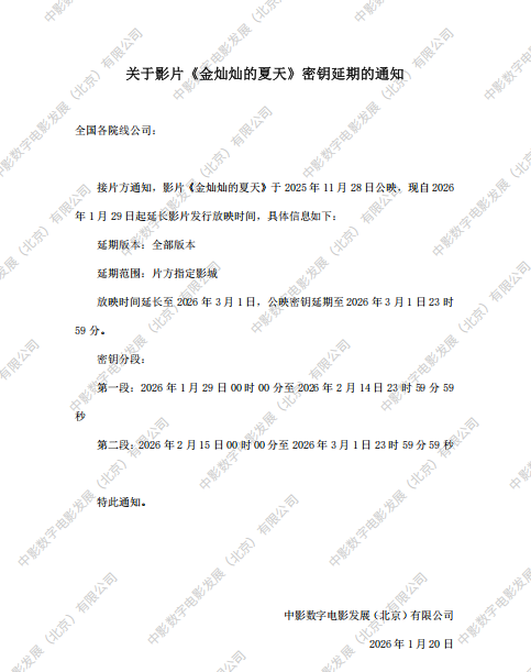 《金灿灿的夏天》密钥延期的通知