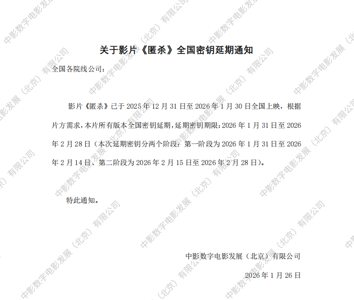 《匿杀》提档的通知
