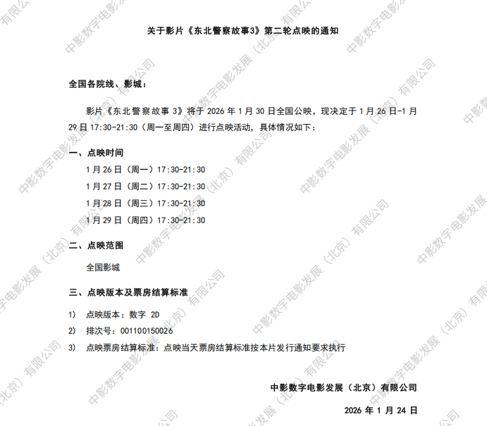 发行通知 » 《东北警察故事3》第二轮点映的通知