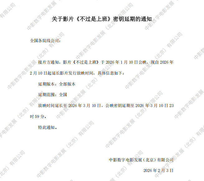 关于影片《不过是上班》第四轮点映的通知