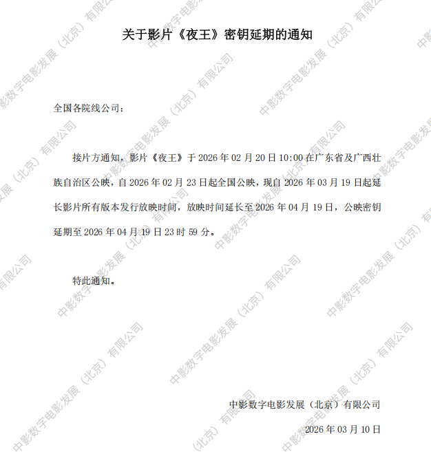 《夜王》扩大发行范围及全国公映的通知