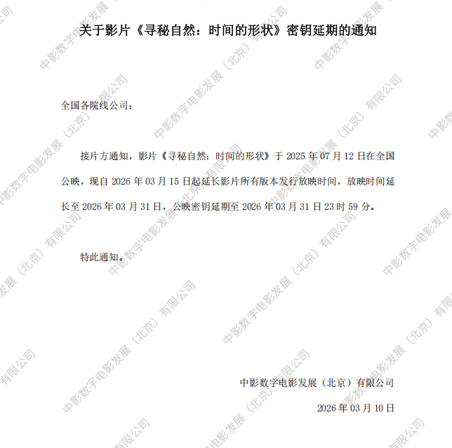 关于影片《寻秘自然:时间的形状》3次密钥延期的通知
