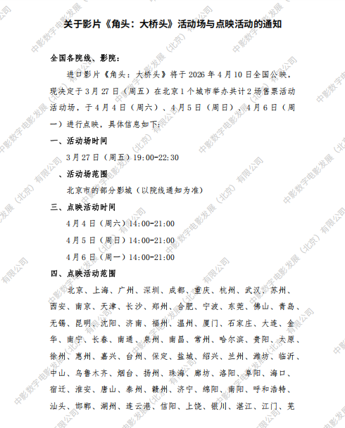 发行通知 » 《角头:大桥头》活动场与点映活动的通知