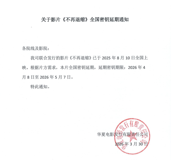 发行通知 » 《不再退缩》全国密钥延期的通知