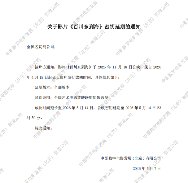 发行通知 » 《百川东到海》第五次密钥延期的通知