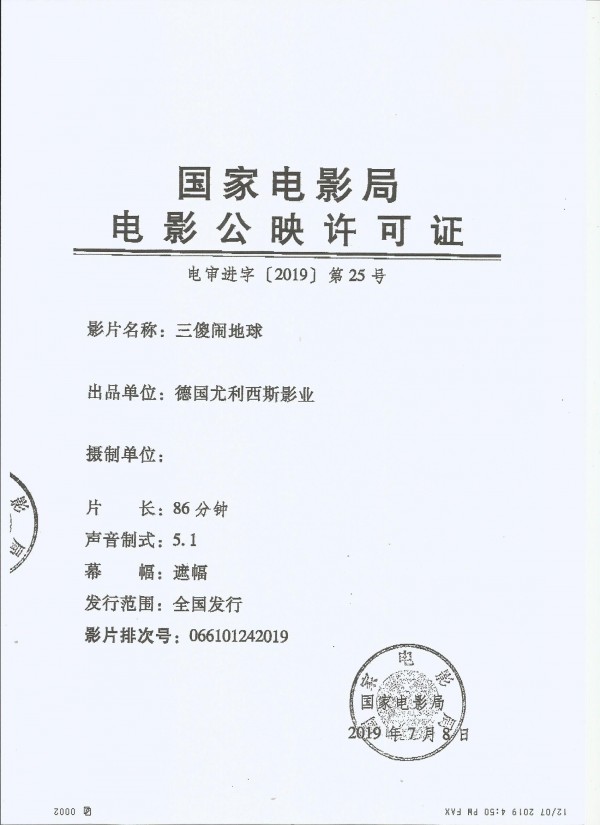 发 行: 中国电影股份有限公司