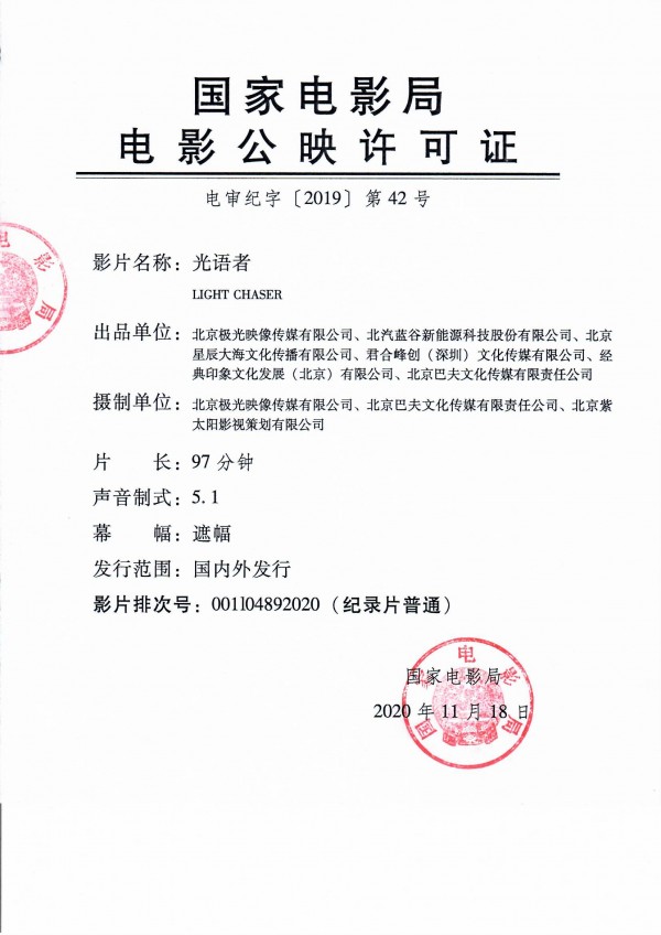联合出品:北汽蓝谷新能源科技股份有限公司、北京星辰大海文化传播有限公司、君合峰创(深圳)文化传媒有限公司、经典印象文化发展(北京)有限公司、北京巴夫文化传媒有限公司