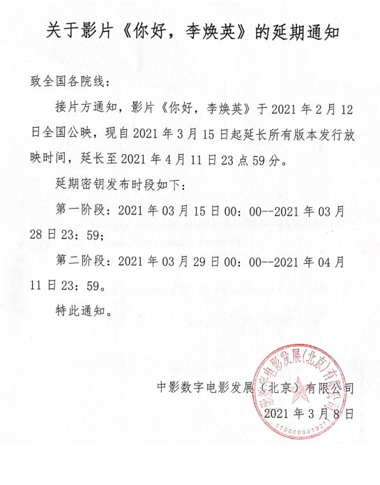 《你好,李焕英》密钥延期通知