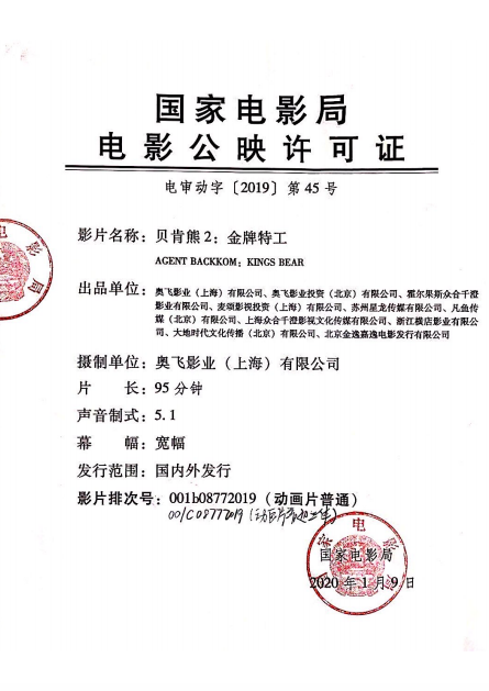 《贝肯熊2:金牌特工》密钥延期及调整票房结算标准