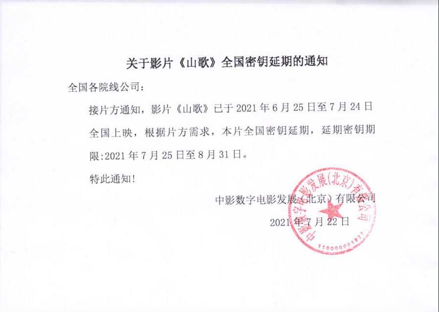 《山歌》第二次全国密钥延期通知