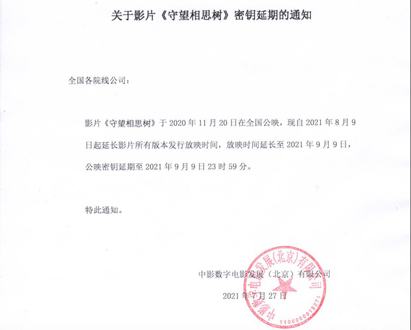 《守望相思树》密钥延期通知