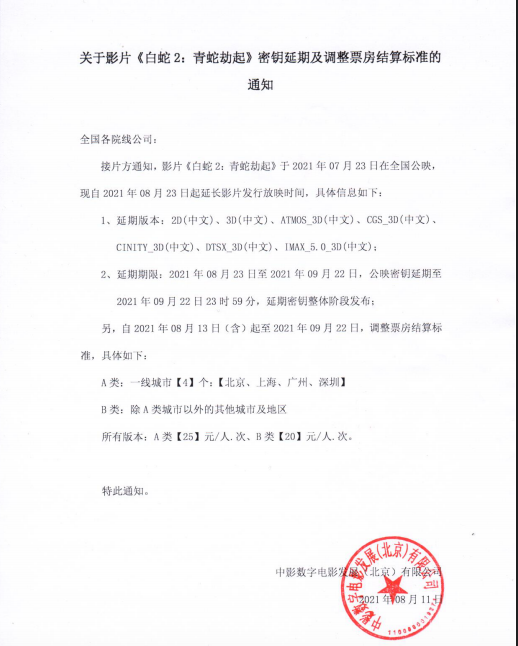 《白蛇2:青蛇劫起》发行通知(以此为准)