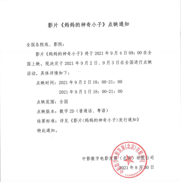 【以此为准】影片《妈妈的神奇小子》点映通知