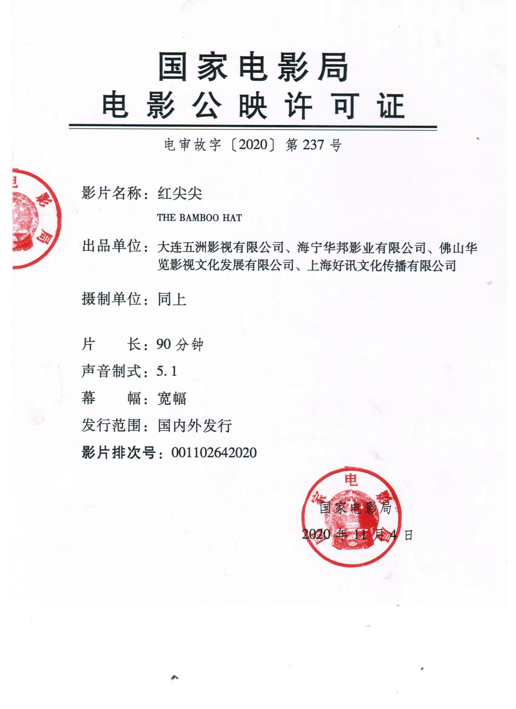 关于影片《红尖尖》第五次密钥延期的通知