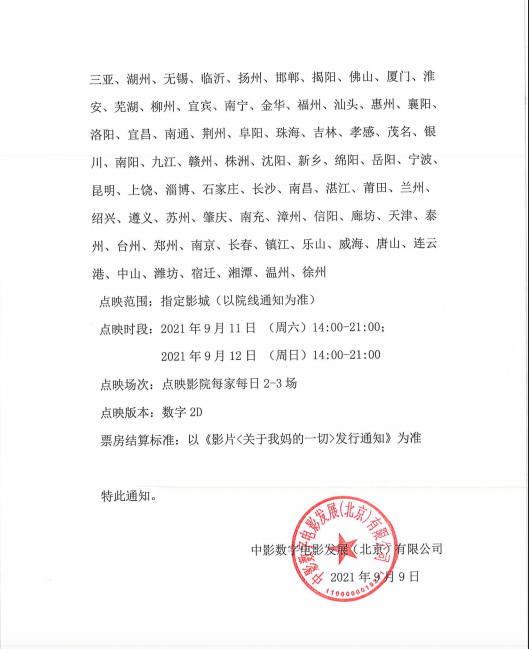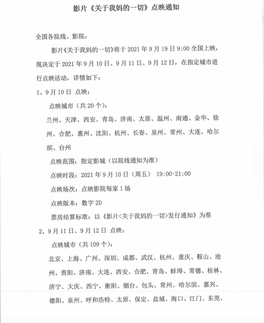 《关于我妈的一切》发行通知