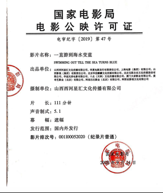 外文片名:SWIMMING OUT TILL THE SEA TURNS BLUE