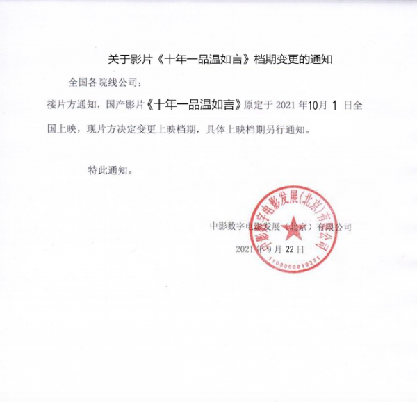 《十年一品温如言》发行通知