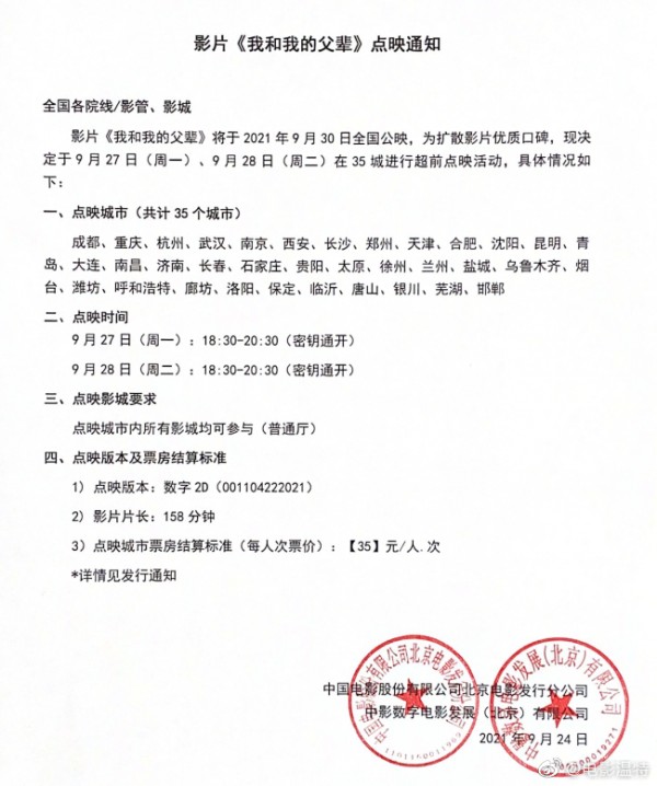 发行通知 » 影片《我和我的父辈》点映通知