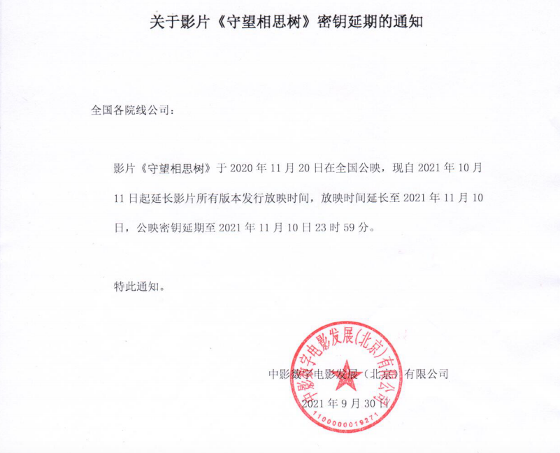 《守望相思树》密钥延期通知