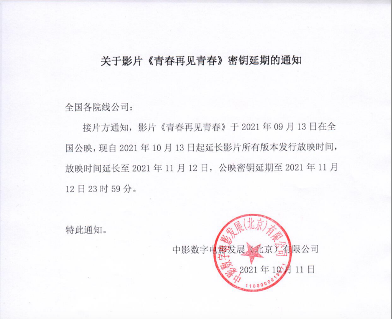 《青春再见青春》密钥延期通知
