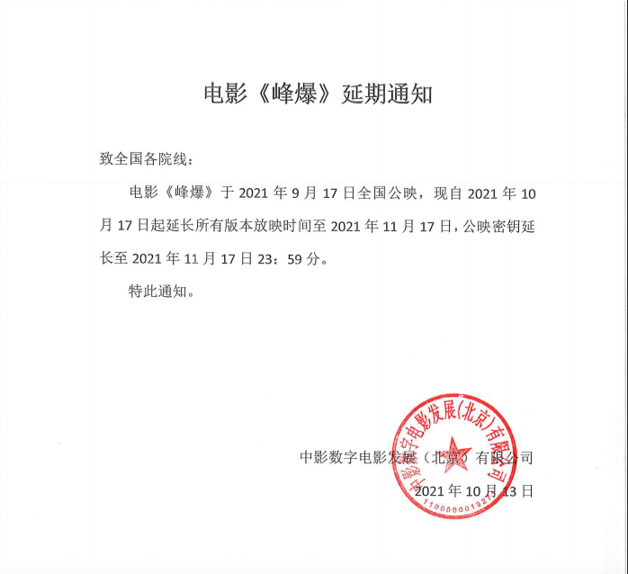 《冰峰暴》发行通知(最低票价信息以此通知为准)