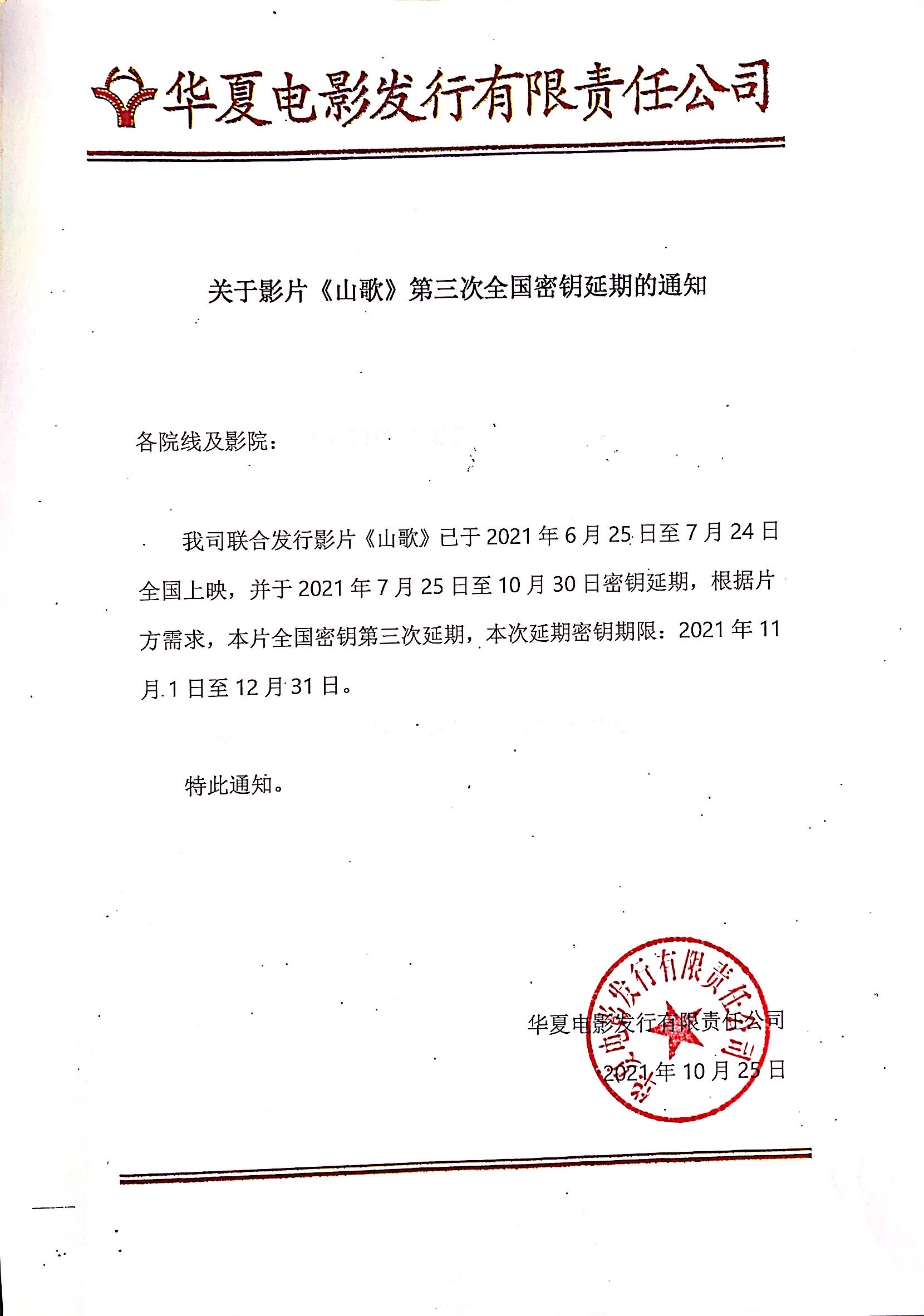 《山歌》第二次全国密钥延期通知