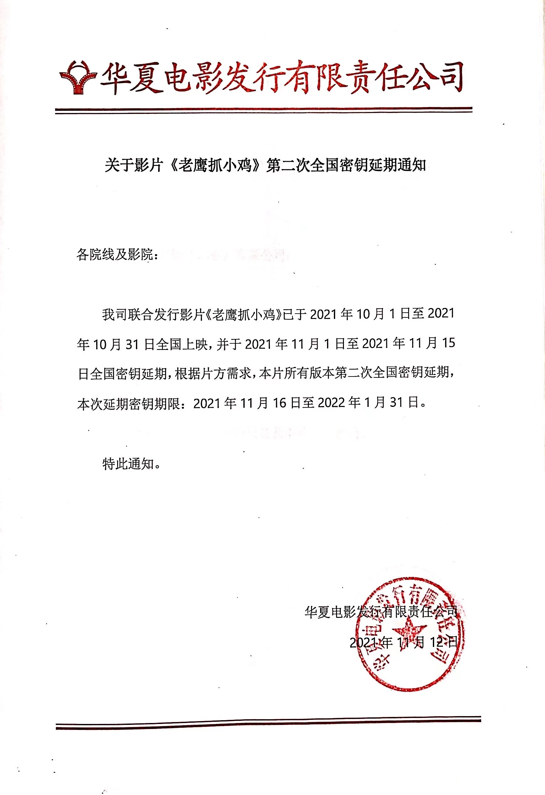 《老鹰抓小鸡》发行通知