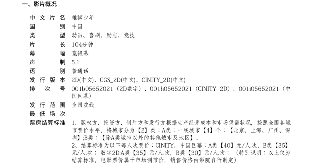 《雄狮少年》密钥延期及调整票房结算标准的通知