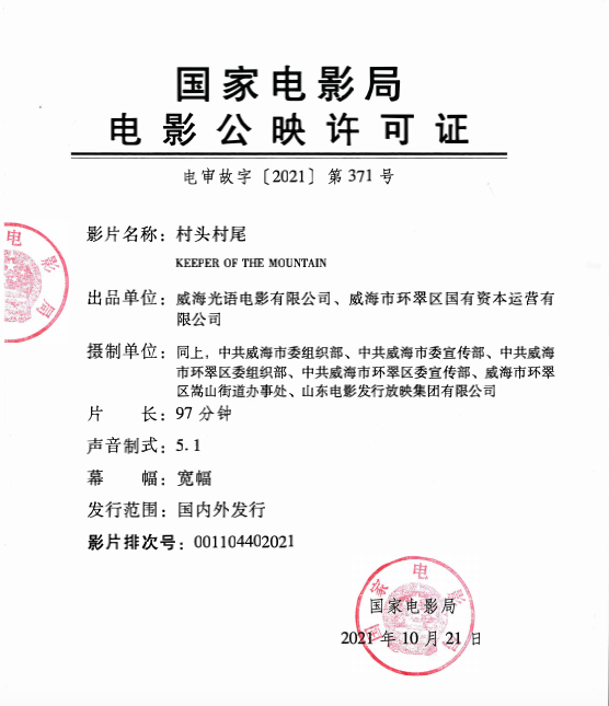 出 品:威海光语电影有限公司、威海市环翠区国有资本运营有限公司