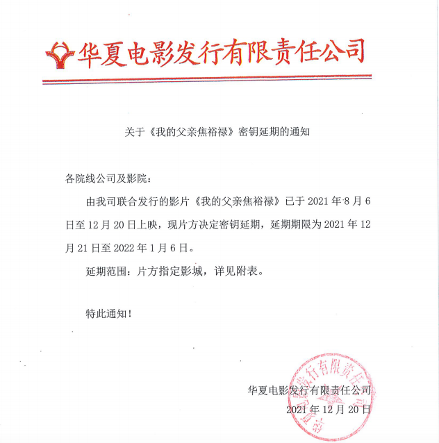 《我的父亲焦裕禄》密钥延期的通知