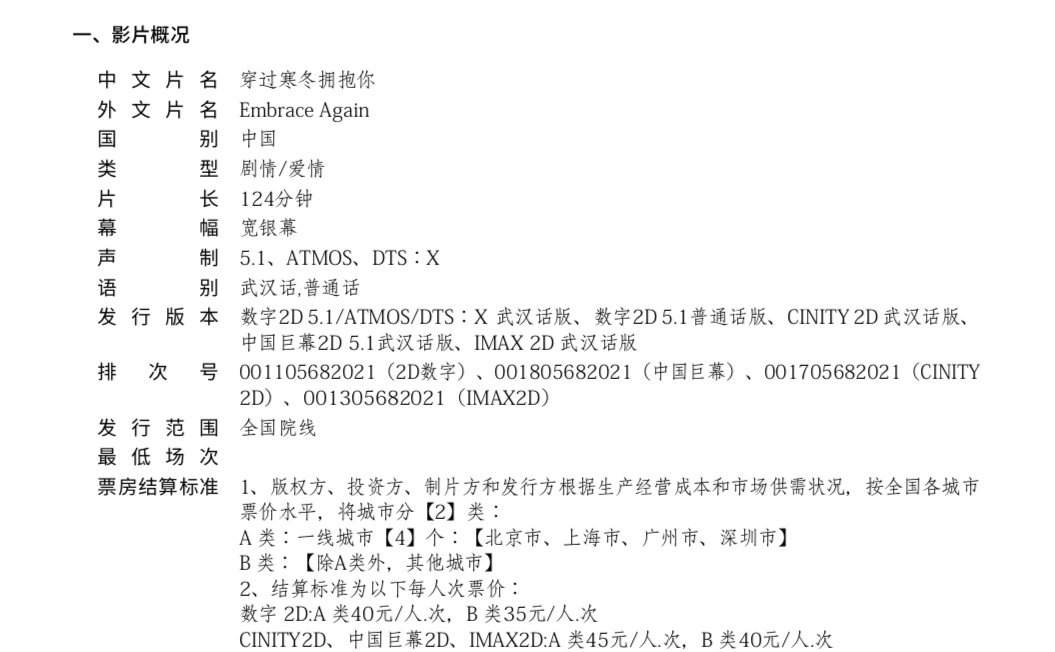二十大展映影片《穿过寒冬拥抱你》发行通知