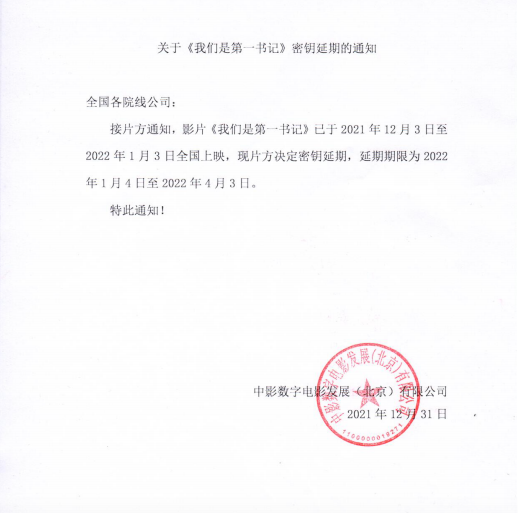 《我们是第一书记》密钥延期的通知