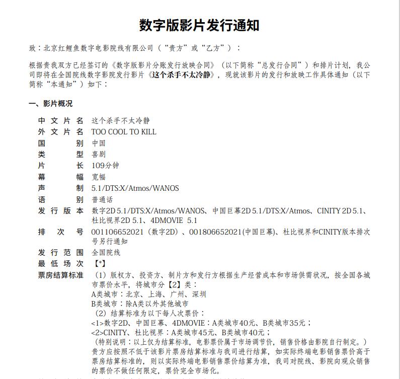 《这个杀手不太冷静》发行通知(中影云预约放映平台)