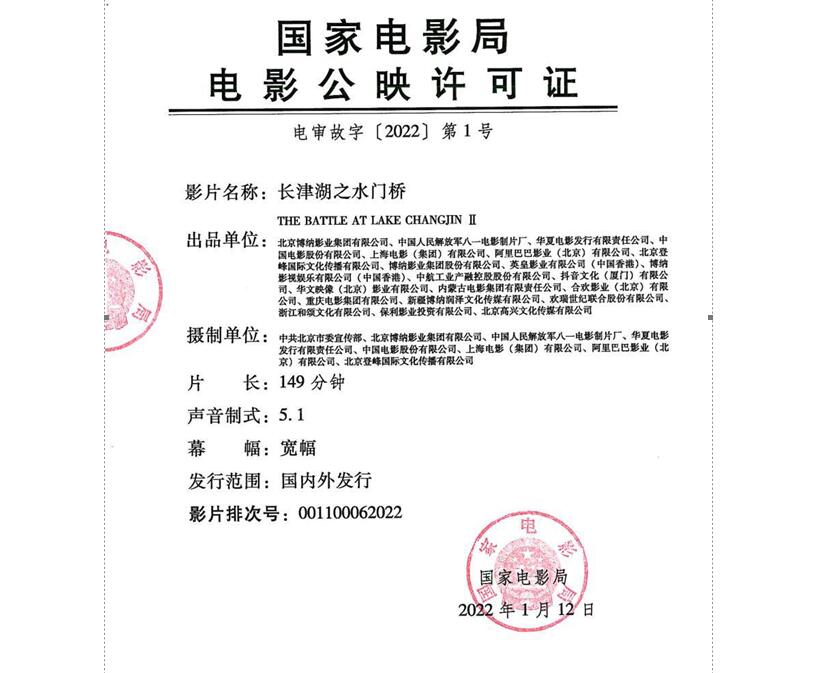 根据贵我双方已经签订的《数字版影片分账发行放映合同》(以下简称“总发行合同”)和排片计划,我公司即将在全国数字影院发行影片《长津湖之水门桥》,现就该影片的发行和放映工作具体通知(以下简称“本通知”)如下: