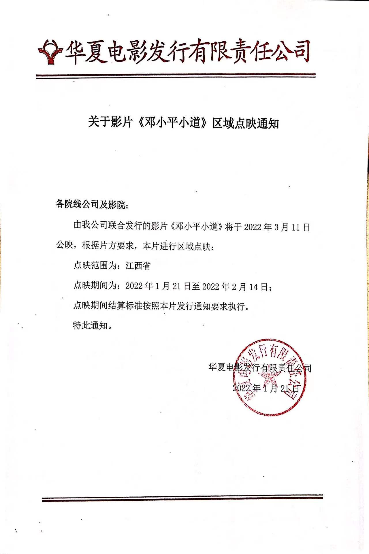 《邓小平小道》发行通知