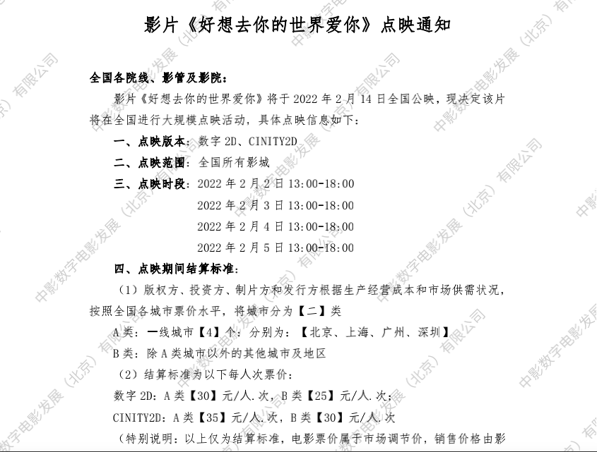 发行通知 » 《好想去你的世界爱你》点映的通知