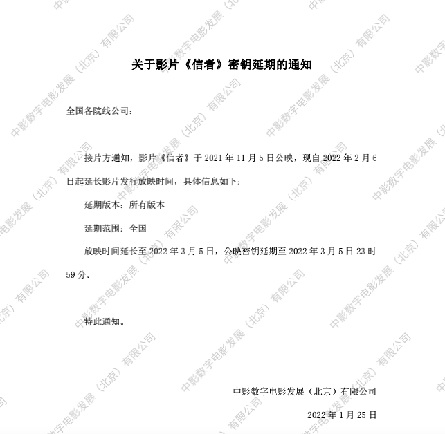《信者》密钥延期的通知