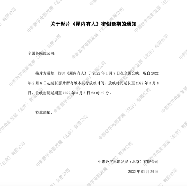 《屋内有人》全国点映的通知