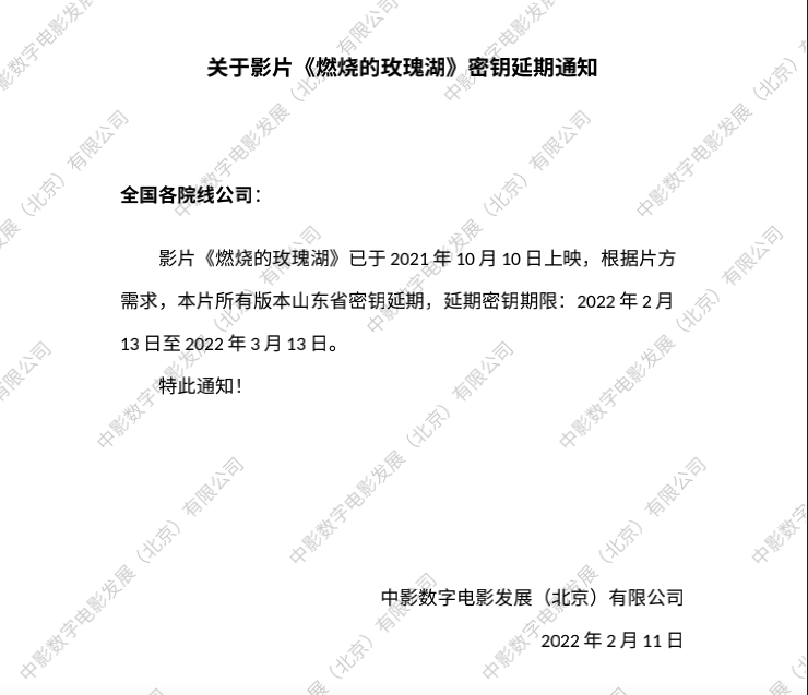《燃烧的玫瑰湖》第四次密钥延期的通知