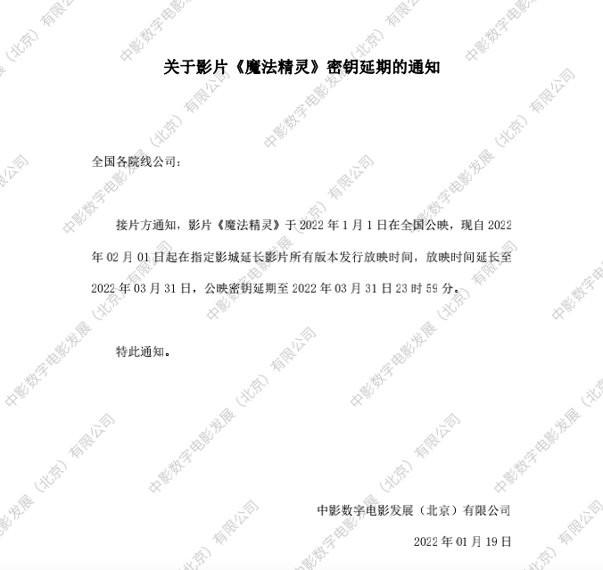 《魔法精灵》全国点映的通知