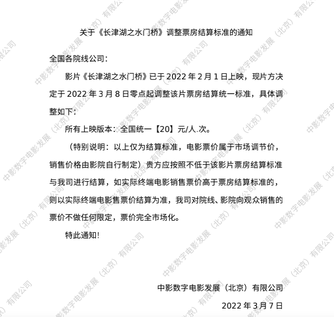 二十大展映影片《长津湖之水门桥》发行通知