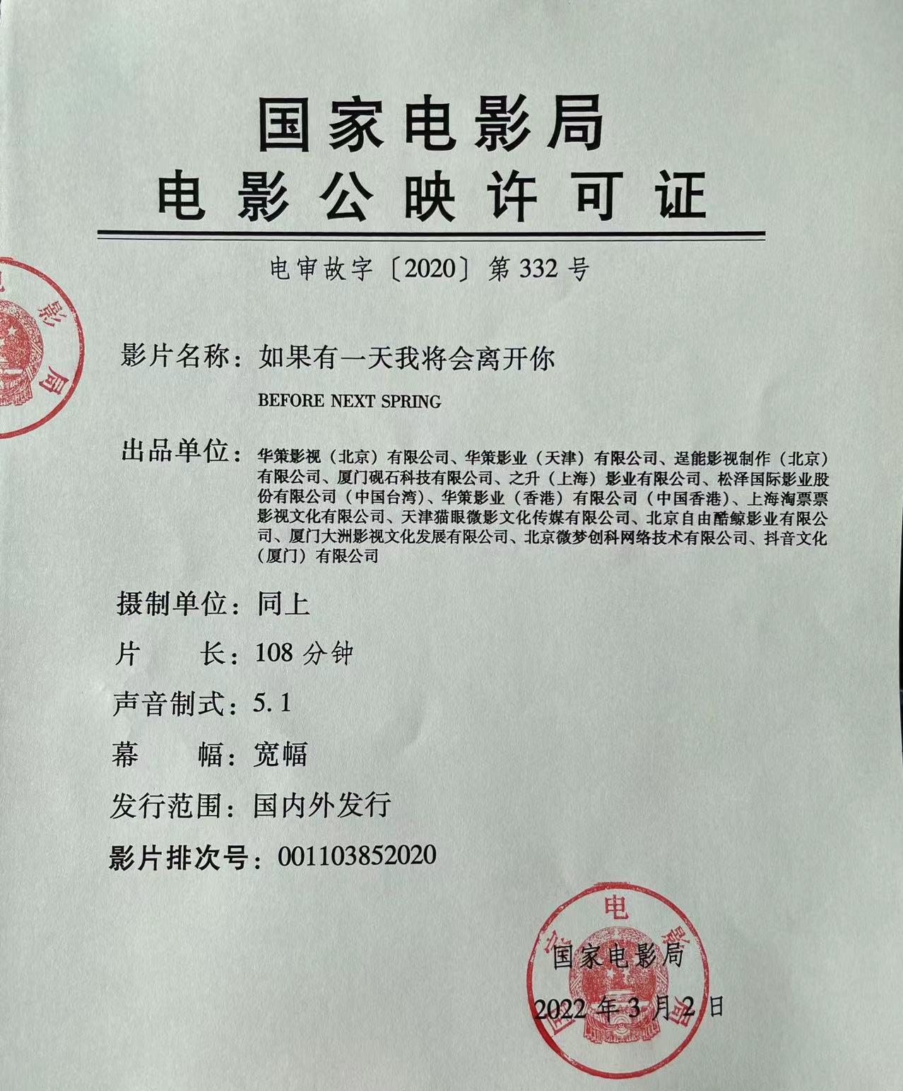 《如果有一天我将会离开你》发行通知