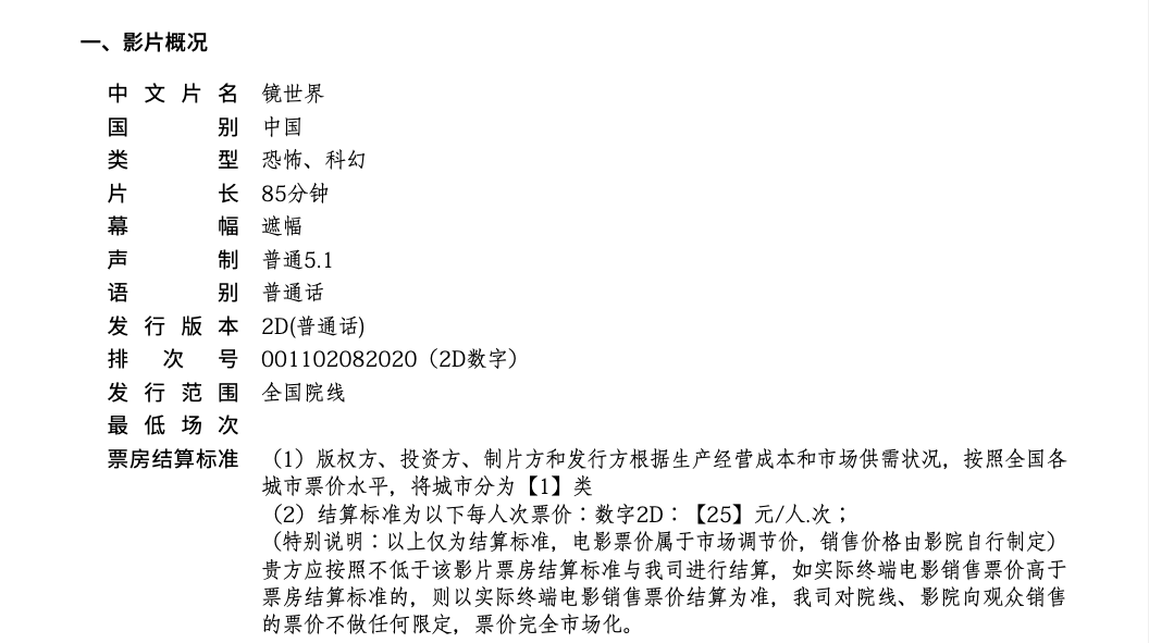 《镜世界》全国点映的通知