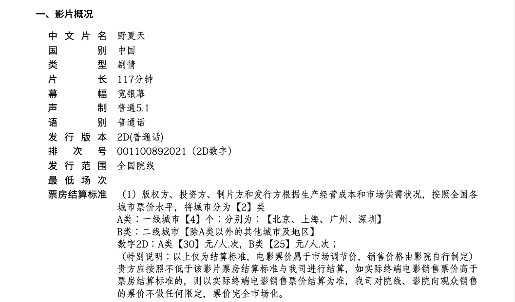 《野夏天》影片时长变更的通知