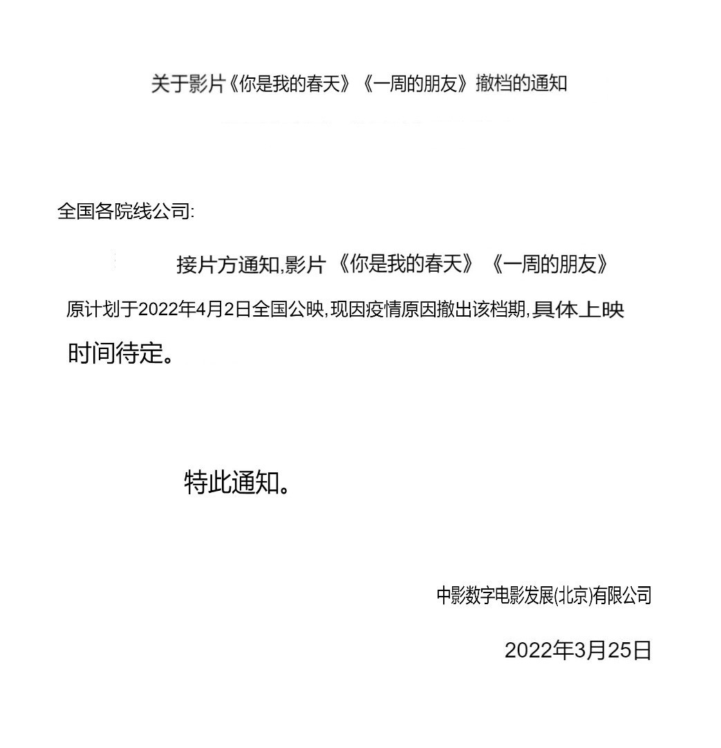 《你是我的春天》发行通知